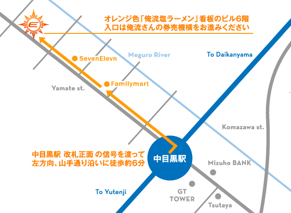 東急東横線:中目黒駅正面改札口より徒歩6分の場所にあります。
